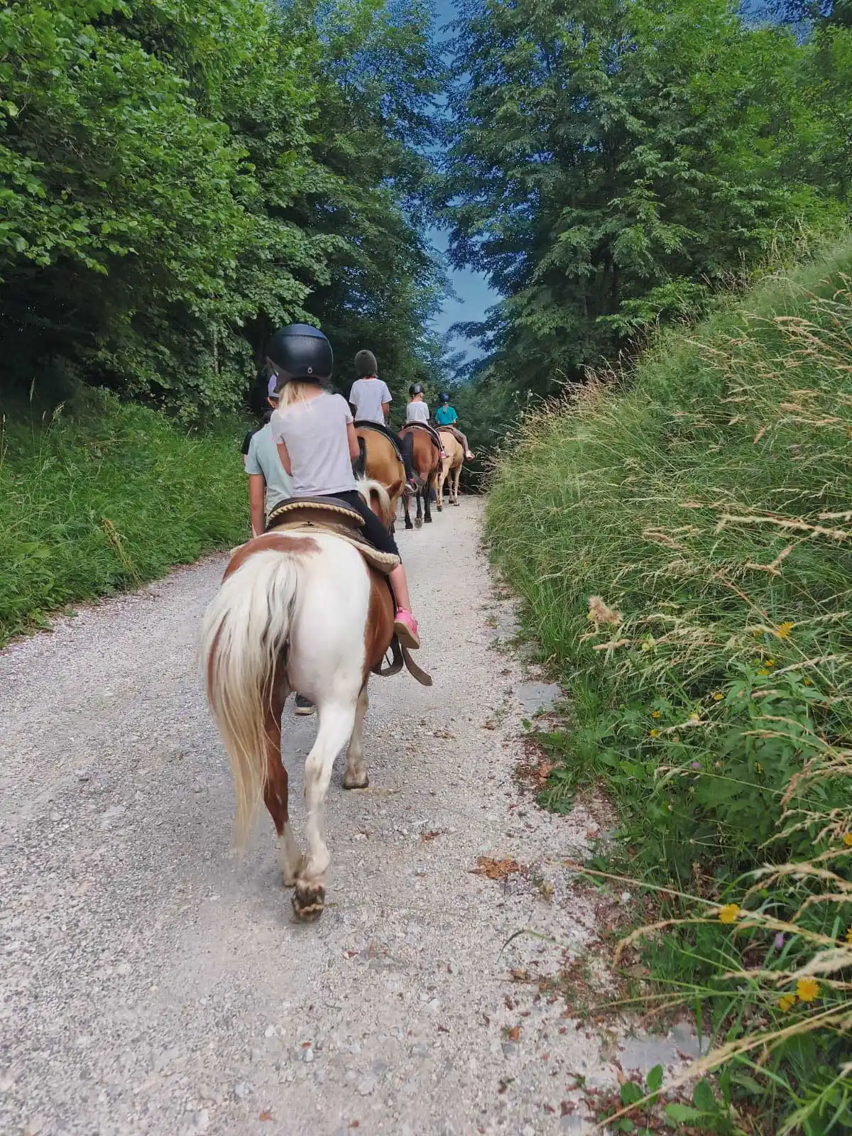 Konji z vodnikom te popeljejo na čudovite izlete ali pa ti v ogradi pokažejo osnove jahanja